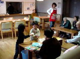 託児所の子供達が絵本やおもちゃを持って遊びに来てくれました。子供が好きな入居者さんはとても喜び、「ばあちゃんに絵本読んでちょうだい!」等と、たくさんお話をしていました。子供達が帰るときは「また来なさいよ〜!」という様子も見られ、職員も入居者さんの新たな一面が見られて嬉しく思いました。