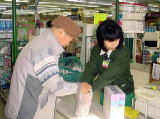 一緒にふじスーパーへ行き、会計を済ませ、袋に入れるのを手伝ってもらい、荷物を持ってもらう。実は入居者さんと一緒に行くと、とっても助かるんですよ。