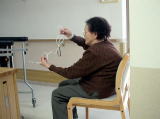 午前中の入居者さんの様子です。昨日、「伊○家の食卓」というテレビ番組でやってたゲームを試してみました。そのゲームとは、ハンガーを伸ばし、色々は方向に折り曲げ、アルミホイルで作った輪を通し、その輪に10円玉を乗せ、10円玉を落とさないようにハンガーの端から端へ移動するというものです。