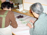 3時のおやつ後の入居者さんの様子です。職員と花札対決をしました。「若いときによくやったんだぞ!」と、とても楽しそうに話してくれました。「いやぁ〜懐かしいなー。もう忘れちゃったかもしれない。」などと言いながら、何回も勝負しました。最後は入居者さんの勝ち逃げで、職員は物足りなかったようです(^.^;