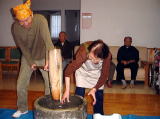 午後2時からお餅つきをしました。「餅なんてしばらくぶりだなぁ。」と懐かしそうに目を細めてもちつきの様子を見る入居者さんや、相取を上手にする入居者さんなど、皆、懐かしの餅つきを楽しめたようです。