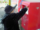 3Fの入居者さんが家族に手紙を書き、隣の郵便局のポストに葉書を出しに行きました。