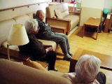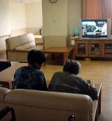 2階午前中の居間でのひとときです。毎日、午前10時頃にジュースやコーヒーなどの飲み物を飲む時間を作り、テレビを見たり会話を楽しみながらゆったりとした時間を過ごしています。