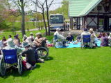 ホーム全体で、家族交流会を兼ねてのお花見を行いました。今年も多くのご家族の皆様に参加していただき、総勢58名で桜山へ行きました。