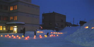 忘れな草前に、施設の職員が毎年恒例の雪だるまをつくりました。(今までHPには載せていませんでしたが、毎年作ってるんです。)