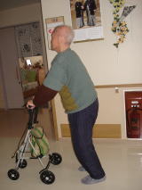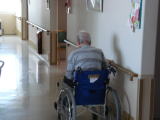 今回は1階の朝の運動、廊下を何回も往復して歩いている