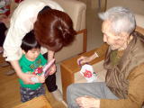 プレゼントしてくれました。かわいらしい子ども達からプレゼントをもらった入居者さんは「ありがとう。」