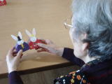 女性入居者の皆さんとスタッフと一緒にウサギの雛人形を作りました。
