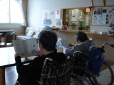 元気一杯、自由自在に車椅子を操られ、フロアー内に笑顔を振り撒いています。