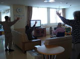 3Fの様子です。10時から入居者さん全員でテレビ体操、エアロビ頑張っています。エアロビもリズムも良く毎日楽しみながら