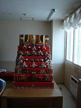 スタッフより、寄贈されたひな壇を3Fロビーに飾ると入居者様は笑顔で「とってもきれいに飾れたね。良かったわ。」と