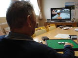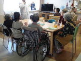 参加を楽しみにされている入居者さんは、時間前に居室より出てこられテレビの前に来て、