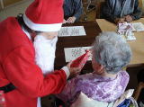開催しました。サンタさんは82歳の女性入居者さんです。歩行時は