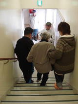 ・各階の入居者さん数名に参加していただき、階段からの避難