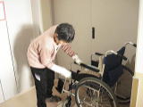 一生懸命掃除をしてくれています。車いすを隅々まで丁寧に