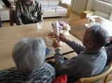 プレゼントを受け取り、他の入居者さんからは歌のプレゼントが
