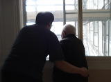2階の男性入居者さま、興味深そうに工事の様子を外から