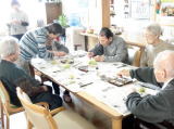 さて、今日は毎月2回の絵手紙の様子です。皆とても真剣!!