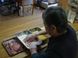 豚肉を付け終わると「美味しそうにできたね」と笑顔で喜ばれていたのが印象的です。