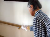 手すり拭きのお手伝いに取り組まれている場面です。毎回ではありませんが、