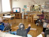 1階の朝の一コマです。毎日、テレビ体操をされています。始めの頃は