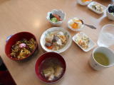 ちらし寿司・お吸い物・うま煮・酢の物・浅漬け・ヨーグルトでした。皆さん