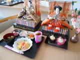 今日はひな祭りです。入居者みんなでひなケーキ≠食べました。