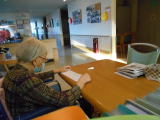 ボランティアさんによる入居者さんの絵手紙の作品と習字をいきがい文化センターへ