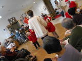 行いました。下を向き、はにかむ子、入居者さんの膝に座りちょろちょろする子等