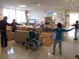 忘れな草2F、朝の体操の時間の様子です。毎回全員でラジオ体操第一を、たまに第二を