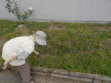 散歩中にホームの裏で急に立ち止まり、気になったのか草むしりを始めてしまった