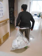 いつもゴミ集めをお手伝いしてくださる入居者さんです。積極的に手伝ってくださり、