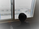 窓から外を眺める入居者さん。「たくさん雪が降って、みんな雪かき大変だね!!」と、