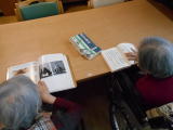 入居者さんの様子です。2週間に1回、移動図書館にて本を借りると、時間を忘れ夢中になって