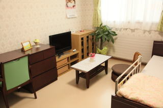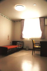 全ての居室には電動ベッド・チェスト・イス・カーテン等が完備されています。